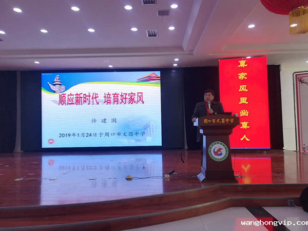 1月24日,周口市星空游戏app手机版基地文昌中学举办“文明新风尚 共建好家风”主题活动。邀请世界家风大会联合国总部论坛执行主席李玉谦、世界家风大会组委委员兼高级讲师陈青莲、世界家风宣讲团高级讲师许建国、全国优秀传统文化宣讲团高级讲师贾秀华四位老师做专题讲座。