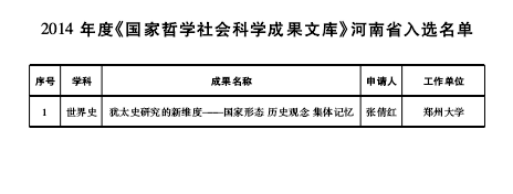 2014年度《国家哲学社会科学成果文库》河南省入选名单